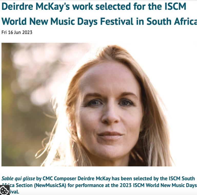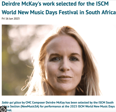 Recipient of a Director’s Choice Award from Boston Metro Opera’s International Composers’ Competition and an Arts Council of Northern Ireland’s Major Individual Artist Award, Deirdre received a coveted Paul Hamlyn Composer Award, London, in 2018. Deirdre’s work represented Ireland at the 2023 International Society for Contemporary Music World New Music Days, Cape Town, South Africa. Previously her work was selected by BASCA from a Europe-wide call for performance with the BBC Singers at St Giles', Cripplegate, and was selected for performance at the International Association of Music Information Centres world gatherings in New York and Ireland.