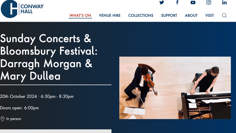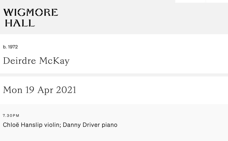 From rural County Down, Deirdre’s work has been performed at London’s Southbank, The Wigmore Hall, The Phillips Collection, Washington, Muziekgebouw, Amsterdam, Orléans Concours International, Gothenburg International Chamber Music Festival, The National Sawdust, Brooklyn, Symphony Space and Carnegie Hall, New York.